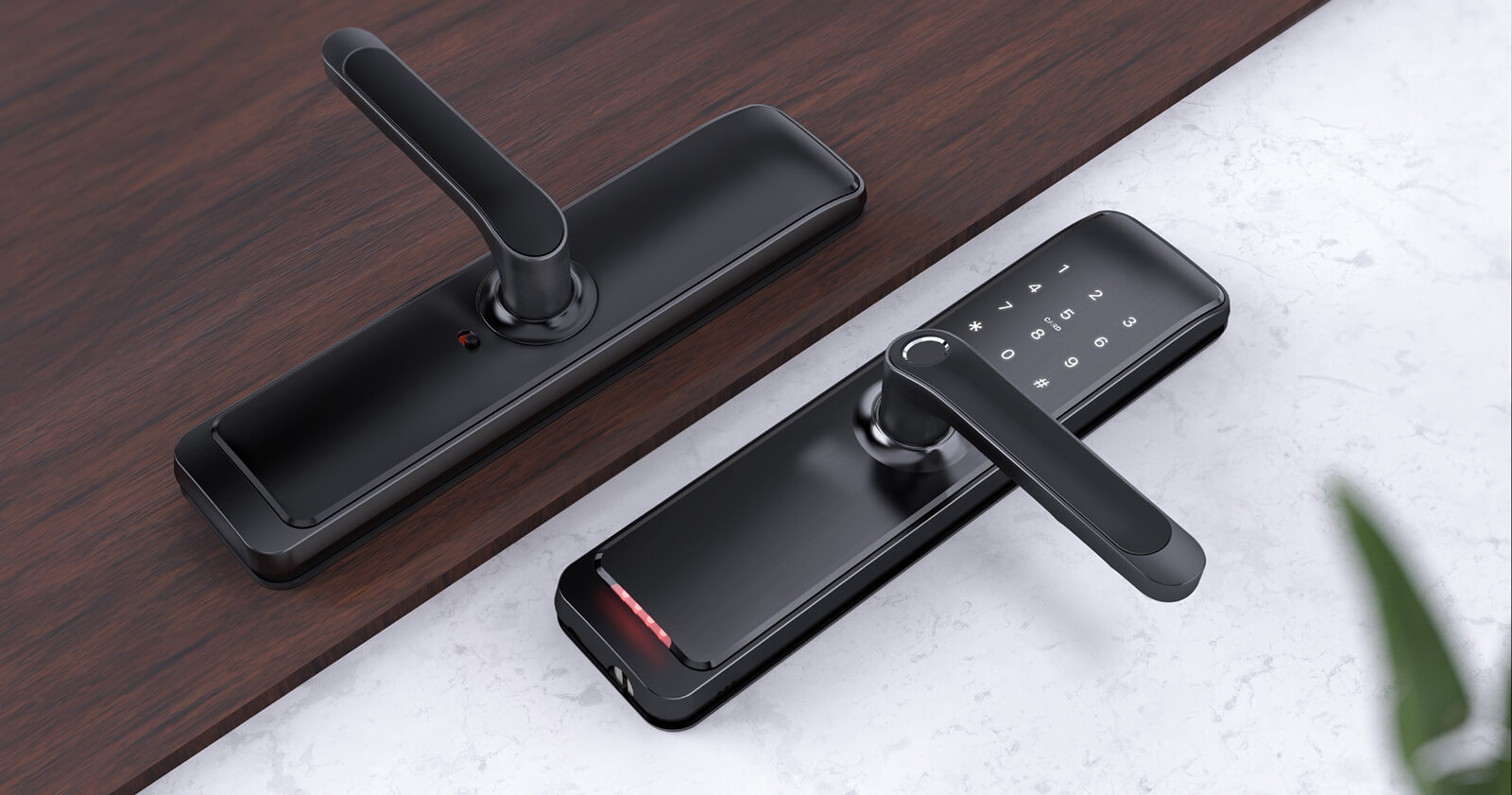 A modern keyless entry system that uses fingerprints, passcode, or smartphone app for